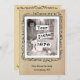 Einladungs-Kartenvorlage im Vintagen Papierformat. Scannen und hochladen eines wertvollen Fotos aus der Vergangenheit. Fun Foto Vorlage mit lockig gelber Rahmen und benutzerdefiniertem Text. Eine perfekte Ankündigungskarte für eine Meilenstein Geburtstagsparty oder Hochzeitstag.