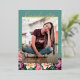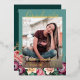 Einzigartige und trendige Goldfolien gratulieren Graduiertenankündigung und Party Einladung-Karte gerahmt mit einer schönen bunten pastellblütigen blauen Lila taupe pink Aquarellfeder und Sommer Blumenkranz auf einem klassisch schicken, dunkelblauen aquamarin blauen Hintergrund. Mit Raum zum Anpassen oder Personalisieren mit einem Foto, den Namen des Absolventen, Klasse Abschluss Jahr, High School, künftige Uni oder Universitätsname, und feiern Party-Event-Informationen. Lass der Familie, Freunden und Nachbarn, dass es einen glücklichen Absolventen gibt, der bereit ist, die Welt zu erobern, und laden Sie alle ein, das glückliche Ereignis mit Ihnen zu feiern!