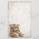 Ankündigung der Pensionierung mit alten abgenutzten und verwitterten Spitzen-up Stiefeln im Vintagen Stil. Geschlechterbezogene Texte, das Jahr, die Ehrentexte, das Datum, die Uhrzeit, der Ort der Feier und die UAWG können individuell angepasst werden.