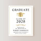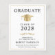 Elegante und preisgünstige Ankündigung eines Uni-Abschlusses mit Goldgrad-Kappe und moderner Typografie für den Namen, das Klassenzjahr, die Uni oder die Universität, den Abschluss und die Hauptfach- oder Ehrensymbole.