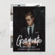 Diese elegante Typografie Graduiertenparty lädt zu einer trendigen Outdoor-Ansammlung ein. Das Grunddesign verbindet klassische minimalistische Schwarz-Weiß-Typografie mit einem rustikalen Boho-Stil. Anpassbar in jeder Farbe. Behalt das Design einfach und elegant, wie es ist, oder fügen Sie Ihre eigenen Ideen und Kunstwerke.