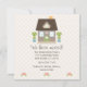 Eine niedliche neue Zuhause mit grüner Tür, Herzfenster und rosafarbenem Knopf, flankiert von topiary in blauen Töpfen mit weißblühenden Blume, kann mit Ihrer Familie zu Beginn oder Monogramm auf diesen benutzerdefinierten, gerade bewegten Ankündigungen personalisiert werden. Blume in Herzform und ein cremiger Polka Dot Hintergrund runden das Aussehen dieser Zuhause ab und vervollständigen das neue Zuhause Design. Artwork © Chrissy H. Studios, LLC. Alle Rechte vorbehalten.