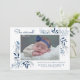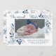 Ankündigung einer süßen Anreise | Handgezeichnete Ausschnitte von Winterzweigen und Berries in den Farbtönen Blau und Silbergrau mit Beeren, die das Foto Ihres neuen Babys umrahmen, um es mit Familie und Freunden zu teilen. Ideal für Ihre Winterkinderankündigung! Originelle Kunstwerke von Paula Pecevich, La Bella Rue. Foto mit freundlicher Genehmigung von Katina Bentley Fotografy© www.katinabentleyphotography.