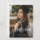 Feiern Sie Ihren Uni- oder Gymnasialabsolventen mit dieser vertikalen Ankündigung eines Fotos, die auch Platz auf der Rückseite für die Abschlussfeier beinhaltet. Das moderne Drehbuch "graduate" auf der Vorderseite in Weiß ist perfekt für einen trendigen Abschluss. Der Backer ist eine klassische Schulfarbe rot mit einem subtilen Muster, aber die Farbe kann durch Klicken auf "Anpassen" in jede Schulfarbe geändert werden.