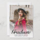 Einfaches Kalligrafiedesign und ein individuelles Foto. Dieses Abschluss-Kartendesign hat bei der Vorder- und Graduiertenparty-Einladung auf der Rückseite Ankündigung. Sie können das Foto und andere Details ändern.