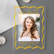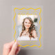 Mit unserem Abschluss für den modernen gelben Rahmen-Acryl- in Gelb, Gelb und Gelb, der ein senkrechtes Foto umrahmt, würdigen Sie den Meilenstein Ihres Absolventen. Das Wort "Graduate" ist elegant in einem handgeschriebenen, gelben Drehbuch auf einem klaren Acrylhintergrund geschrieben, wodurch ein elegantes und zeitgenössisches Design entsteht. Passen Sie diese Ankündigung mit dem Namen, der Schule und dem Abschluss Jahr für eine personalisierte und einzigartige Touch an. Dieser moderne und zeitlose Sake ist perfekt für Absolventen der Highschool und der Uni und ist eine atemberaubende Möglichkeit, die spannenden Neuigkeiten mit Freunden und der Familie zu teilen.