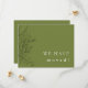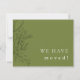 Eine elegante Art, Ihre neue Zuhause mit diesen schönen, sich bewegenden Ankündigungen bekannt zu geben. Mit einem von Hand gezeichnet Blumenstrauß, gepaart mit schlichten, minimalen Schriftart auf natürlichem, grünem Hintergrund.