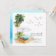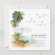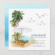 Moderne Aquarellbäder mit zwei Liegestühlen, weißem Regenschirm, Palmen & Seagulls Küsten-Bewegung Ankündigung.