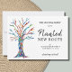Unsere Familie hat neue Wurzeln gepflanzt! Erzählen Sie Ihrer Familie und Ihren Freunden, dass Sie mit dieser stilvollen, mit einem bunten Familienbaum dekorierten Ankündigungskarte umgezogen sind. Einfach anpassbar. Weil wir unsere Kunstwerke erstellen, werden Sie dieses exakte Bild von anderen Designern nicht finden. Original Mosaik © Michele Davies.