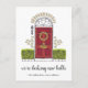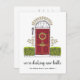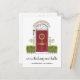 Charmante Ferienzeit bewegende Ankündigungen lass Freunden und Familie wissen, dass Sie eine neue Zuhause für den Urlaub haben! Das Design umfasst eine gezeichnete rote Türillustrierung, die mit einem grünen Weihnachtskranz geschmückt ist und von grünen Büschen umgeben ist. Unter dem Bild "Wir decken neue Hallen". Personalisieren Sie Ihre neue Adresse und Ihren Familiennamen oder Namen auf der Rückseite mit Platz für die Adressierung des Empfängers.