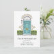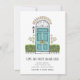 Bezaubernde und moderne Ankündigungen ließ Freunden und Familie von Ihrer neuen Zuhause Sweet Zuhause! Das Design ist mit einer gezeichneten, lichtdurchfluteten Aqua-Türentür-Illustration versehen, die von grünen Büschen flankiert ist und unter der "Komm und klopfe an unsere Tür" steht. Personalisieren Sie Ihre neue Adresse und Ihren Familiennamen oder Namen.