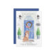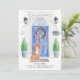 Mit unserer stilvollen Ankündigung kündigen Sie Ihre neue Adresse mit einem Cavapoo, einer blauen Eingangstür, Begrüßungsmatte, Schiefer-Schild, Topiaries und einem blumengeschmückten Set auf grauem Ziegelboden an.
