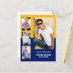Moderne, blaue und goldene 4-Foto Collage Abschluss Ankündigung Postcard. Personalisieren Sie Ihre Fotos mit den Lieblingsbüchern Ihres Absolventen und fügen Sie ihren Namen, Schule und Abschluss Jahr. Verwenden Sie Zazzles Design-Tool, um die Hintergrundfarben in Ihre Schulfarben zu ändern.