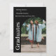 Zwei Abschluss oder doppelte Party Einladung-Karte. Zwei Foto des Absolventen erscheint auf der eleganten Party Postcard Einladung. Der Name, die Schule und das Unterrichtsjahr des Absolventen sind in lässiger, moderner schwarzer Schrift auf der Rückseite geschrieben.