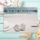 Postkarte "Adresswechsel" mit einem Foto Sonnenschirm und Sandalen im Sand am Strand. Ideal für die Familie, die zum Strand oder zur Küste zieht.