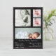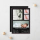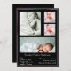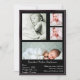 Dieses Babydesign ist eine wertvolle Art, Ihr neues Freudenbündel zu begrüßen und zu verkünden! Dieses Design hat einen schwarzen Hintergrund mit einem dünnen rosa Rand. Es gibt Rahmen für 2 größere Fotos und 2 kleinere Aufnahmen. Es gibt einen Platz für den Namen des Babys unten in weiß. Unten ist ein Platz für Ihre Details und Geburtsinformationen und eine persönliche Nachricht unter dem Bild. Auf der Rückseite ist ein schwarzer Hintergrund.