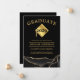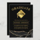 Trendy 2025 Abschluss-Ankündigungskarte mit schwarzem Hintergrund mit goldenem Glitzer-Muster, einem Motboard mit dem Klassenjahr oben, dem Namen der Schüler und ihren Zukunftsplänen.