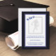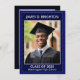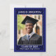 Dies ist eine blau gestreifte Ankündigung des Abschlusses, die Ihren Abschluss zeigen wird. Die Vorderseite wird ein Bild des Absolventen haben, während die Rückseite ein Bild eines Fußballspielers hat. Die Titelschrift ist vollständig editierbar: Name Class Year School Back-Formulierung ist auch alle editierbar: Er hat es getan! Informationen zum Abschluss.