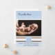 Dieses wertvolle Baby-Ankündigungsdesign ist eine wunderbare Möglichkeit, Ihre neue Ankunft zu feiern. Dieses Design hat einen hellblauen Hintergrund geblockt mit weißen und braunen Streifen. In der Mitte ist ein Platz für Ihr personalisiertes Foto Ihres Sohnes. Oben steht, dass wir stolz willkommen heißen und den Namen Ihres Babys tragen. Unter dem Foto ist ein Platz für sein erstes Monogramm. Am unteren Ende gibt es einen Ort für den Namen Ihres Babys, die Geburtsstatistik und die Namen der Eltern.