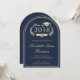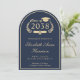 Formal bogenförmige, dunkelblaue Uni-Abschluß-Ankündigung mit "Class of" in einer goldenen Illustration eines klassischen Lorbeerkranzes mit Graduiertenkappe und Diplom und dem Namen des Absolventen in einem eleganten, hellen Goldskript. Fügen Sie ihre Schule, Dur, Ehren oder zukünftige Pläne in einfachen modernen Gold Typografie.