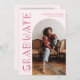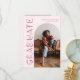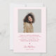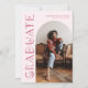 Stilvolle und moderne Abschluss-Ankündigungskarte zum Versenden an Familie und Freunde. Es gibt einen rosa Bogenrahmen um Ihr Foto. Sie können ein zweites Bild auf der Rückseite hinzufügen, und die Nachricht ist editierbar. Es steht "graduate" auf der Seite der Karte in celestial und boho Typografie Schriftart.