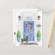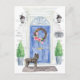 Mit unserer stilvollen Ankündigung kündigen Sie Ihre neue Adresse an: Bouvier des Flandres, blaue Haustür, Begrüßungstafel, Schiefer-Schild, Topiaries und ein blumengeschmücktes Set auf grauem Backstein.