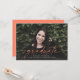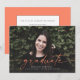 Diese vollständige Ankündigung von Foto-Abschluss enthüllt das Wort "graduate" in Korallenskript über die Vorderseite geschrieben. Es hat Platz für den Namen des Absolventen, das Klassenzjahr und die Schule. Die Rückseite der Karte kann für eine persönliche Nachricht oder für die Einladungsdetails der Graduiertenparty verwendet werden.
