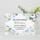 Dusty Blue und Eukalyptus Greenery Moderne und elegante florale Watercolor Spring Wir haben neue Zuhause- oder New Address-Karten verschoben - inklusive wunderschöner und eleganter Schrift-Typografie mit modernen botanischen Blume und Grün für die besondere New Zuhause oder New Address-Feier.