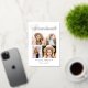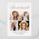 Elegante Abschluss-Ankündigung mit "Graduate" oben in einer Rose Goldfolie-Kalligraphie-Skript angezeigt. Das Design besteht aus vier Fotos des Absolventen, die in einem Collage-Stil mit dem Namen, dem Namen der Schule und dem Jahr des Abschlusses dargestellt sind. Die Ankündigung des 4-Foto-Abschlusses kehrt zurück, um optionalen Text wie z.B. Zukunftspläne, Angaben zur Graduierungspartei usw. anzuzeigen. Die schicke Ankündigung des Abschlusses ist ideal, um den Abschluss von Absolventen der Oberstufe und der Uni anzukündigen.