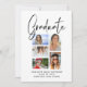Die elegante Script Multi Foto Abschluss Ankündigung beinhaltet fünf Ihrer Lieblings-Fotos Ihrer Uni oder High School Absolventen mit dem Wirblen modernen schwarzen Kalligraphie-Skript-Overlay "Graduate". Personalisieren Sie den Text durch Bearbeiten in den bereitgestellten Textfeldern. Einfach, stilvoll und elegant. Erstellt von ©Evco Studio www.zazzle.com/store/evcostudio