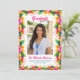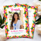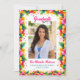 Diese lustige Ankündigung eines tropischen Abschlusses zeigt eine üppige Blumengrenze von hellen Hibiskus-Blume und ein Foto des Absolventen. Auf der Rückseite der Karte finden Sie Ihre Ankündigungsdetails. Sie können die Formulierung anpassen, um dies zu einer einfachen Ankündigung von Abschlüssen oder einer Party Einladung zu machen. Fügen Sie Details Ihrer Wahl hinzu, wie z.B. die zukünftigen Bildungen des Graduates, Sonderehren, etc. FOTO-TIPP: Für beste Ergebnisse schneiden Sie Ihr Foto vor dem Hochladen auf eine ähnliche Form. Ein stilvolles, tropisches Design, um den besonderen Tag Ihres Absolventen zu feiern. Herzlichen Glückwunsch an die Graduate!
