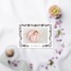 Elegante Geburtenankündigungen zeigen Ihr Lieblings-Foto in horizontaler oder landschaftsorientierter Form, verpackt in botanischen Blattfäden und Blattwerk aus Goldfolie. Der Name des Babys, die Geburtsdaten und die Unterschrift Ihrer Familie erscheinen unten. Fügen Sie der Rückseite sechs zusätzliche Fotos in einem Collage-Layout hinzu, oder löschen Sie, um leer verlassen.