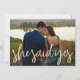 Herzlichen Glückwunsch zu Ihrer Verlobung! Speichern Sie die Date Ankündigungen sind der erste große Schritt in der Hochzeitsplanung! Denken Sie daran, Ihr Ankündigung Datum freihalten wird den Ton für Ihren großen Tag Set, Sie werden mit einem unvergesslichen Design und einem flüchtige Blick in das, was kommt, beeindrucken! Dieses Design zeichnet sich durch einen wunderschönen fließenden romantischen Schrift-Schriftart aus.