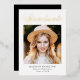 Elegante Abschluss-Ankündigung mit "Graduate" oben in einer Goldfolie-Kalligraphie-Skript angezeigt. Das Foto des Absolventen wird mit seinem Namen, seinem Schulnamen und seinem Abschluss im Folgenden dargestellt. Die Ankündigung des Foto Abschlusses kehrt zurück, um optionalen Text wie z.B. künftige Pläne, Graduierungsparty-Details usw. anzuzeigen. Die schicke Ankündigung des Abschlusses ist ideal, um den Abschluss von Absolventen der Oberstufe und der Uni anzukündigen.