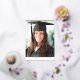 Eine einfache moderne Karte, um einen Abschluss anzukündigen. Die Vorderseite zeigt GRADUATE in der realen Goldfolien-Schrift Typografie. Personalisieren Sie mit einem Foto des Absolventen, der Abschluss Name, schließ Jahr und Schule. Auf der Rückseite befindet sich eine Typografie-Vorlage, die Sie mit Ihrer eigenen Nachricht personalisieren können, oder Sie können alle Texte löschen, um leer verlassen.