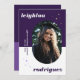 Mit dieser einzigartigen Abschluss-Ankündigungskarte, die ein Foto in gerundetem Rahmen auf einem dunkelfarbigen, lila-weiß geblockten Hintergrund zeigt, der von Sternen mit lustig inspiriertem trendigen Stil, der den Namen des Absolventen hervorhebt, hervorgehoben wird, von der Masse abheben. Die Farben können an Ihre Schulfarben angepasst werden.