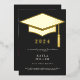 Die elegante und dezente Ankündigung dieses Abschlusses ist modern und einfach, aber raffiniert, mit schlichtem schwarzem Hintergrund und cremefarbenem, weißem Text. Die Graduierungskappe und das Jahr sind echte Goldfolie. Ihr Lieblings-Foto des Abschlusses vervollständigt den Rücken. Verkünden Sie Ihre Errungenschaft mit Klasse und Eleganz. Erstellt von der einfachen Farmhouse Press.