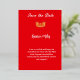 Akzent der Goldfolie Diese Save the Date Seitenankündigung wird in einem Layout angezeigt, damit Sie die Samples einfach anpassen und in Ihre Textinformationen ändern können. Text beidseitig farbig rot