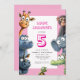 Mit dieser spielerischen Party-Ankündigung können Sie ein spannendes Zooabenteuer erleben! Dieses lebendige Design besticht durch eine reizvolle Auswahl an niedlichen und sonderbaren Zootieren, die allesamt zu einem besondere Anlass versammelt sind. Der fröhliche rosa Hintergrund verstärkt die festliche Stimmung und macht sie zu einer fantastischen Wahl für eine Kindergeburtstagsfeier, besonders für einen 5. Geburtstag. Diese Ankündigung wird sicher alle begeistern für einen Tag voller Spaß, Spiele und Dschungelveranstaltungen. Machen Sie mit diesem bezaubernden und auffälligen Design den Geburtstag Ihres Kindes ganz besonders.