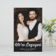 Wir sind verlobt! Teilen Sie Ihrer Familie und Freunden Ihre Verlobung mit dieser individuell anpassbaren Foto-Verlobung-Briefpapier-Karte mit. Es enthält Retro-Skript und einfache Typografie. Diese klassische Ankündigung zur Verlobung von Foto ist in anderen Farben erhältlich. Personalisieren Sie Ihre Fotos, Namen und andere Details.