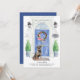 Mit unserer stilvollen Ankündigung kündigen Sie Ihre neue Adresse an: Rottweiler, blaue Eingangstür, Begrüßungstür, Tonschiefer, Topiaries und ein blumengeschmücktes Set auf grauem Ziegelboden.