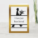 Müssen Sie bekannt geben, dass Ihre Scheidungspapiere angekommen sind? Schicken Sie diese einzigartige und lustige Grußkarte mit einem Kellner - Server mit einer großen Platte und Terine. "Ich bin gerade bedient worden ... und es war nicht Suppe!" Gruß auf der Karte. Schwarz-Weiß-Illustration mit goldfarbenem Rahmen. Art, Bild und Vers Copyright © Shoaff Ballanger Studios.