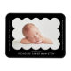 Moderner Geburtsankündigungsmagnet mit dem Foto Ihres Babys, das sich in einem schwarz geschlagenen Rahmen befindet. Personalisieren Sie den schwarzen Geburtsankündigungsmagnet, indem Sie den Namen Ihres Babys und zusätzliche Informationen in weißer Schrift hinzufügen.