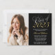 Eine elegante Drehbuch-Schriftart-Klasse von 2025 Graduation Party Ankündigungen. In Gold, Weiß und Schwarz dargestellt. Ideal für Abschluss, Uni-Abschluß oder Abschlussfeier. Designs sind flache gedruckte Illustrationen/Grafiken - nicht echte Goldfolie. DAS FOTO DER PROBE IST NICHT ENTHALTEN. ERSETZEN SIE DAS FOTO VOR DER BESTELLUNG.