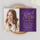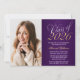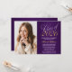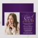 Eine elegante Drehbuch-Schriftart-Klasse von 2025 Graduation Party Ankündigungen. In Gold, weiß und lila dargestellt. Ideal für Abschluss, Uni-Abschluß oder Abschlussfeier. Designs sind flache gedruckte Illustrationen/Grafiken - NICHT AKTUELLE GOLD FOIL. DAS FOTO DER PROBE IST NICHT ENTHALTEN. ERSETZEN SIE DAS FOTO VOR DER BESTELLUNG.