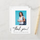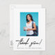 Feiern Sie Ihre akademische Leistung im Stil mit unserer University Foto Abschluss Ankündigung Vielen Dank Postcard. Diese moderne und personalisierte Postkarte ermöglicht es Ihnen, Ihr Abschluss Foto zu präsentieren und stolz Ihr strahlendes Lächeln neben Ihrem Namen, Klassenjahr und Schulnamen darzustellen. Die Vorderseite der Postkarte zeichnet sich durch ein elegantes Design mit einem modernen Script-Schriftart aus, das den Kern dieses bedeutsamen Ereignisses abbildet. Teilen Sie Ihre Freude und Ihren Erfolg mit Familie und Freunden und danken Sie für ihre Unterstützung während Ihrer gesamten Bildungsreise. Auf der Rückseite der Postkarte haben Sie die Möglichkeit, eine herzliche Danksagung, ein besonderes Zeichen und Ihre Rücksendeadresse einzufügen. Die Anpassung dieses Abschnitts ermöglicht es Ihnen, sinnvolle Verbindungen mit den Lieben zu pflegen und Ihre Wertschätzung für ihre Ermutigung zu zeigen. Diese Postkarte ist nicht nur eine schöne Art, "danke" zu sagen, sondern dient auch als Plattform, um Ihre Pläne für die Zukunft zu teilen. Sie können die Botschaft so anpassen, dass die Menschen über Ihre beruflichen Ziele oder weitere akademische Ziele informiert werden, sodass sie Ihre Leistungen feiern und Ihre Reise in die Zukunft unterstützen können. Unsere University Foto Abschluss Ankündigung Dankeschön Postcard ist nicht nur eine Geste der Dankbarkeit, sondern auch eine Chance, wichtige Verbindungen lebendig zu vernetzen und behalten. Es dient als Erinnerung Ihres Erfolgs und als Einblick in die Zukunft, die vor uns liegt. Erleben Sie das Wesen dieses besonderen Augenblicks mit einer personalisierten Postkarte, die einen bleibenden Eindruck verlasse und Ihre Liebsten nah behalte, wenn Sie neue Abenteuer beginnen.
