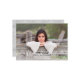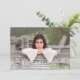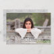 Chic Abschluss-Ankündigung, mit benutzerdefinierter Platzierung des Fotos auf der Vorderseite, der Karte, und Grafiken von weißen Spitzen, über die Unterseite und Abdeckung der Rückseite. Schwarzer Text ist bereit, um Ihren Abschluss zu personalisieren, um Ihren Anzug zu erfüllen. Musterbeispiel Foto mit freundlicher Genehmigung von Lorri Lang.