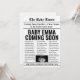 Einführung in unsere Pregnancy Announcement Newspaper Style Card! Erleben Sie die Vorfreude mit einer personalisierten Touch. Mit einem Foto, das mit viel Liebe zum Sonogramm ausgezeichnet wurde, ist diese Karte der perfekte Weg, um die freudigen Neuigkeiten mit Freunden und Familie zu teilen. Erleben Sie den Zauber, während Sie diese wunderbare Reise gemeinsam unternehmen.