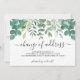 Lass Familie und Freunde, dass du mit dieser botanischen New Address Moving Announcement Card umgezogen bist. Es ist mit Aquarell eucalyptus grün und stilvollen Schriftzeichen dekoriert. Einfach anpassbar. Original Wasserfarbe © Michele Davies.