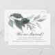 Rustikale und einfache, bewegende Ankündigungen ließ Freunden und Familie wissen über Ihre neue Zuhause Sweet Zuhause! Das Design zeigt botanische Aquarellgrün in den Farbtönen von staubblauen und grünen Blätter mit Ihrer individuellen Ankündigung (mit "wir sind umgezogen" gezeigt), Ihrem Namen(en) und dem Adressenwechsel. Fügen Sie eine personalisierte Nachricht an Freunde und Verwandte auf der Rückseite dieser Postkartengröße mit Platz für Ihre Briefmarke und Empfängeradresse hinzu.